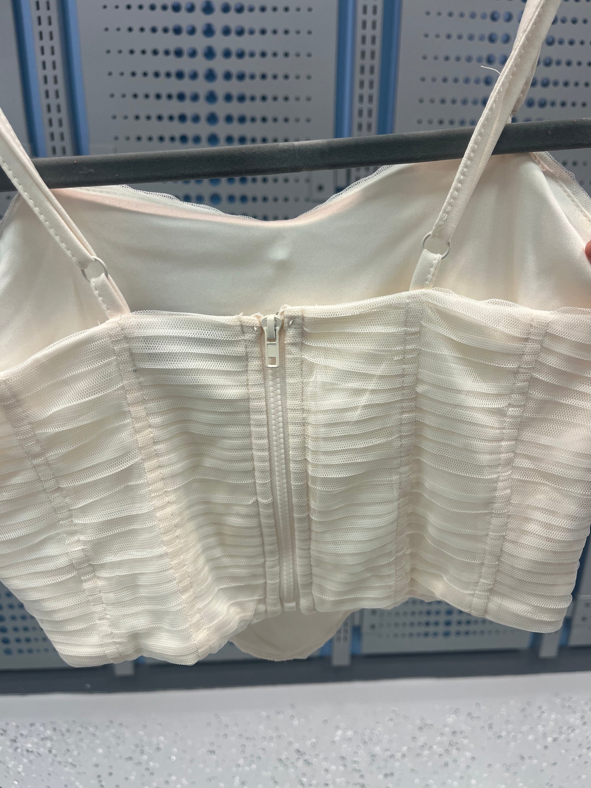 This cute summer time light pink spaghetti stapled shirt is perfection for hot outside occasions or sweet inside fun